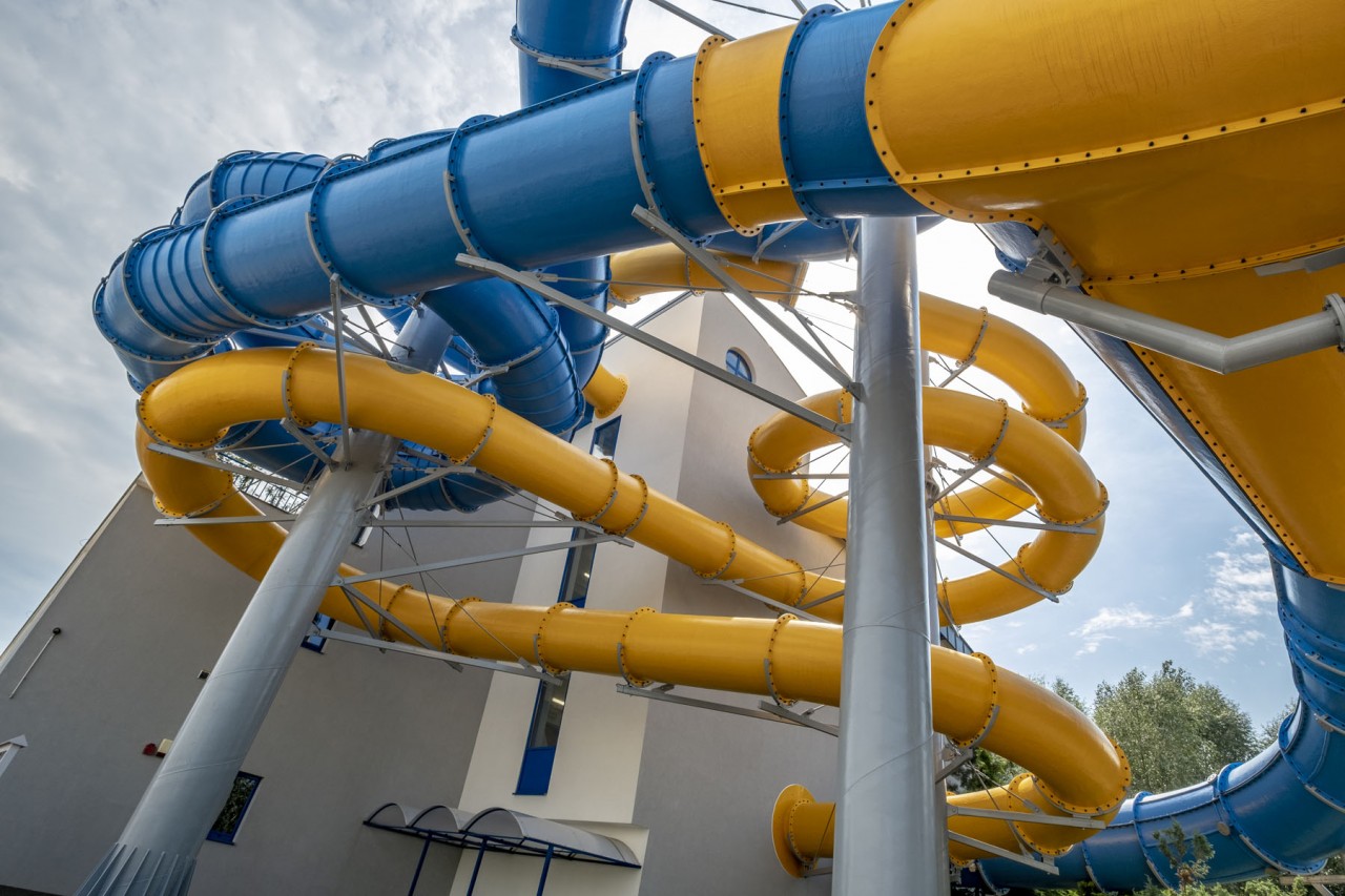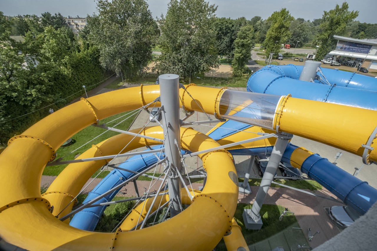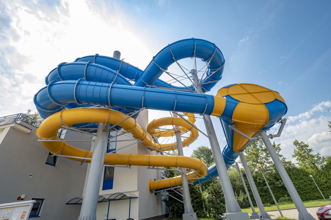| Zjeżdżalnie wodne: | Tube 1400 - 102m Tube 1000 - 91m |