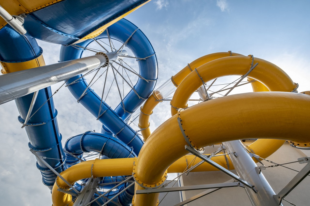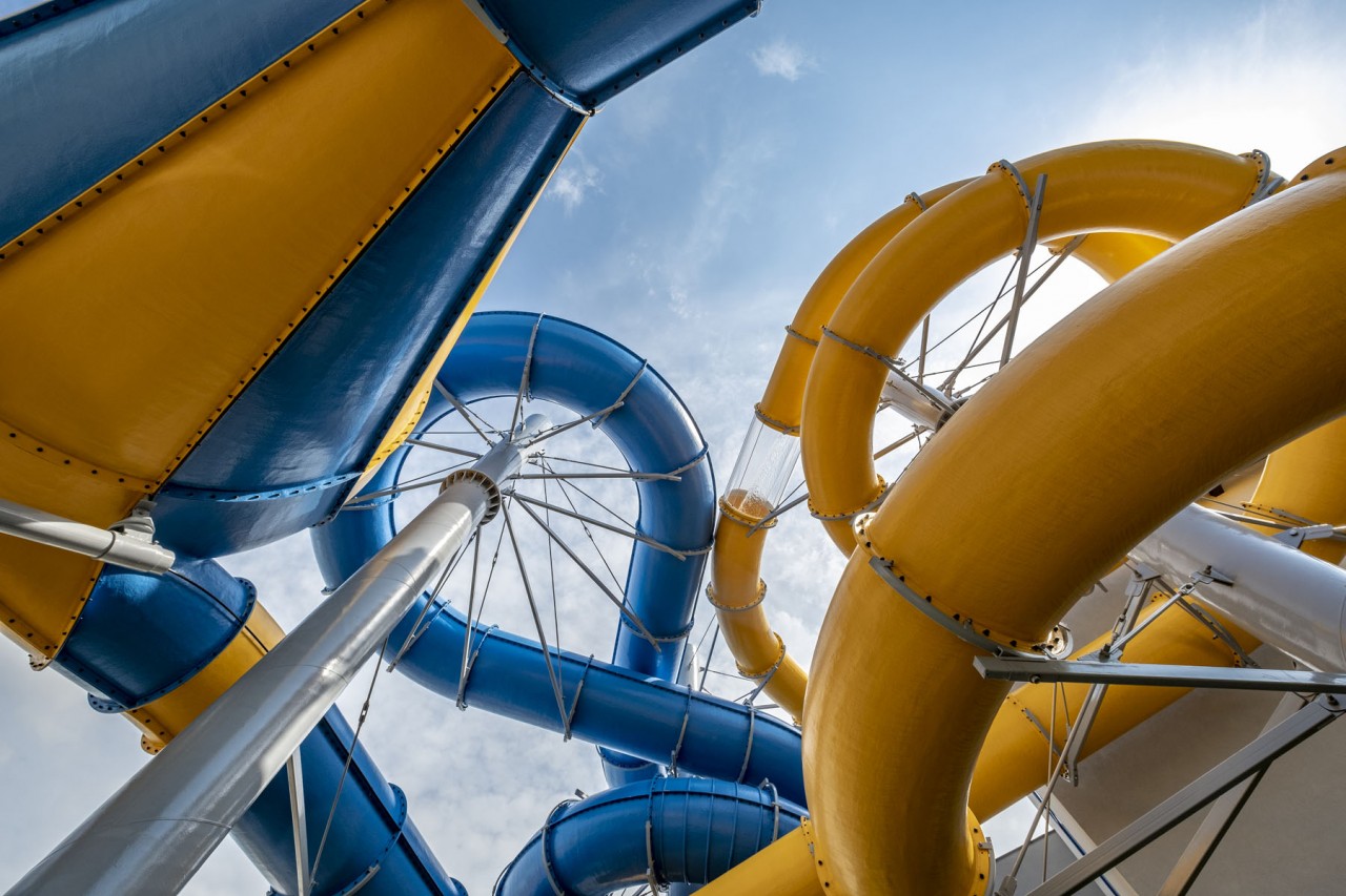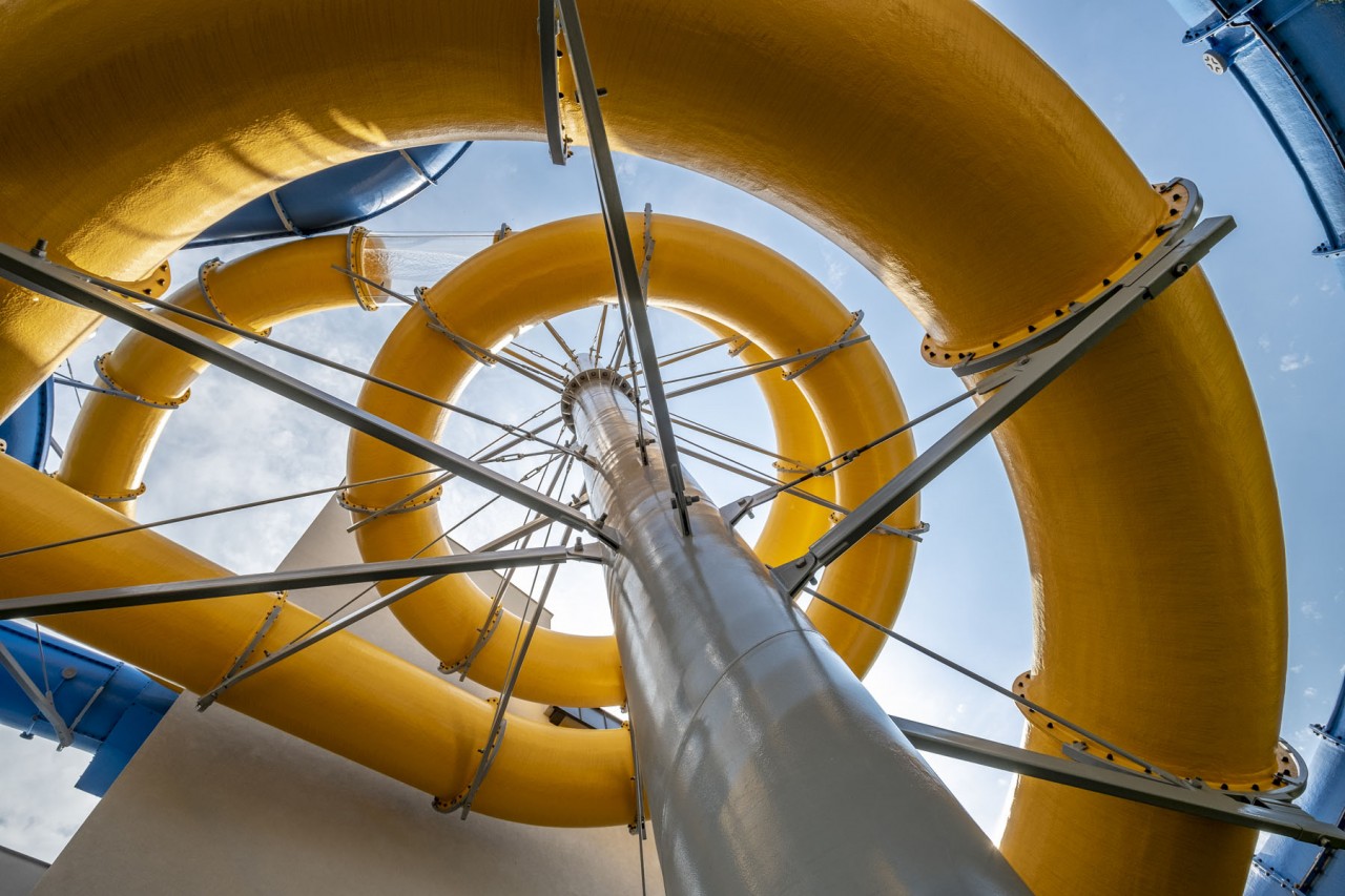 | Zjeżdżalnie wodne: | Tube 1400 - 102m Tube 1000 - 91m |